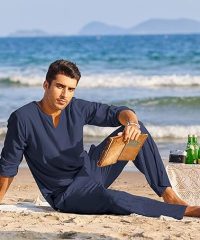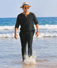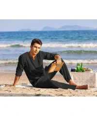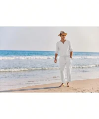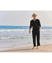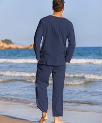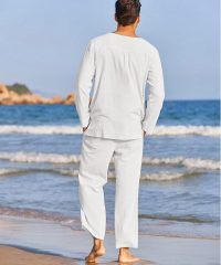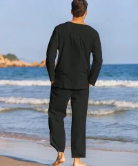 Fayzam Men’s Linen Cotton Set | Long Sleeve Shirt with Beach Pants | Traditional & Casual Outfit
