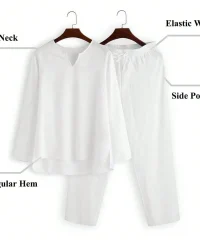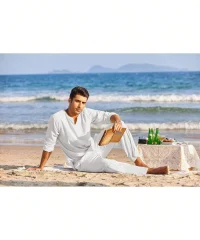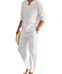 Elevate your style with the Fayzam Men’s Linen Cotton Set, designed for comfort and timeless appeal. This 2-piece outfit includes a breathable long-sleeve shirt and relaxed-fit pants, making it an ideal choice for casual gatherings, daily wear, or traditional occasions.